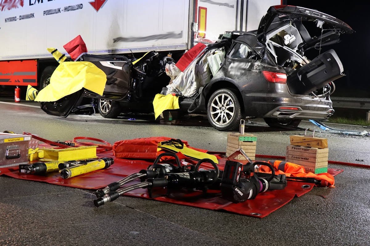 Mittels einer Seilwinde konnte die Feuerwehr den PKW teilweise unter dem Auflieger herausziehen. Im PKW fanden die Einsatzkräfte zwei Fahrzeuginsassen, beide wurden durch den Unfall tödlich verletzt. Mit hydraulischem Rettungsgerät konnten beide Personen geborgen werden.