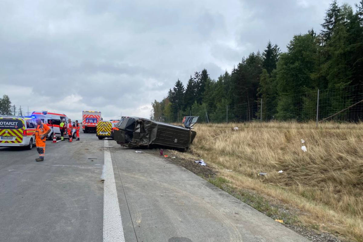 A9 Dittersdorf – Kleintransporter überschlägt sich nach Reifenplatzer mehrfach