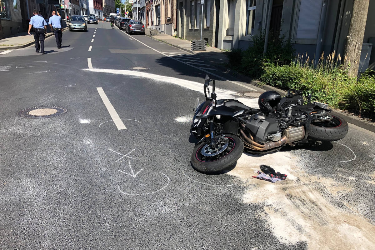 Auto stößt mit Motorrad zusammen – Motorradfahrer schwer verletzt (Bildquelle: Polizei Aachen)