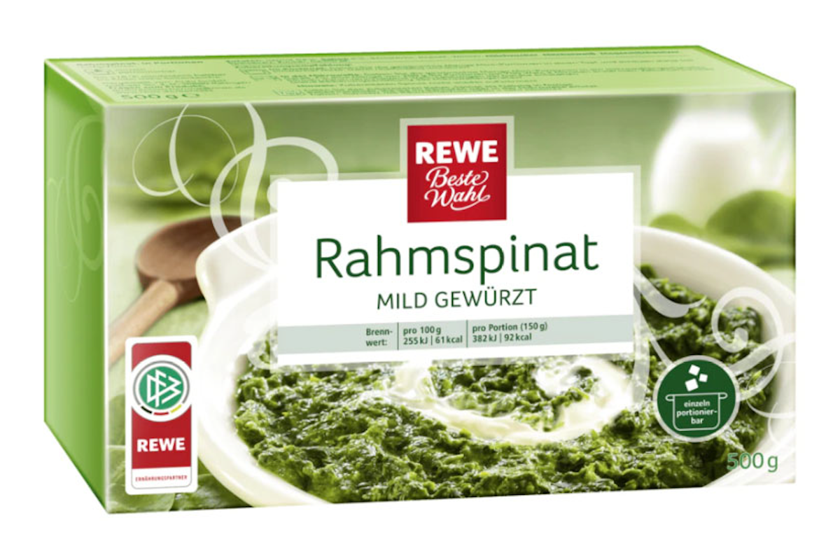„REWE Beste Wahl, Rahmspinat portioniert mild gewürzt“ (Bildquelle: polizeiticker.online)