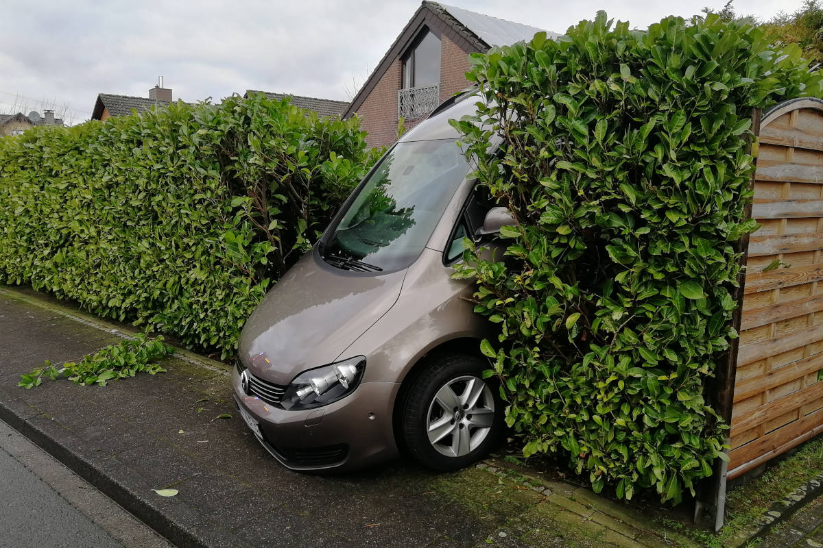 Eine ältere Dame ist gegen 16:20 Uhr mit ihrem Pkw in der Hecke des Nachbarn gelandet.