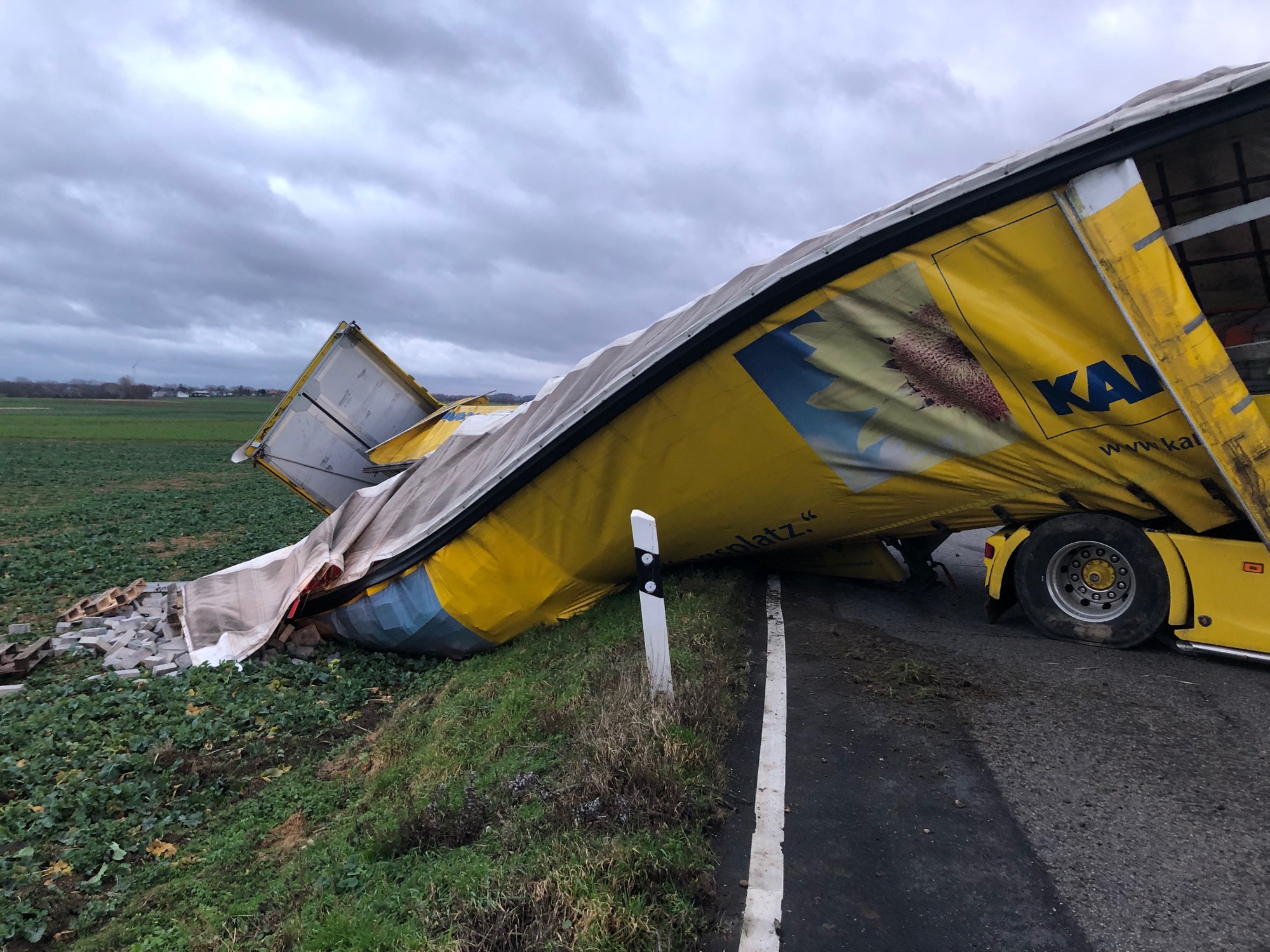 In Dürboslar ist am Montag (09.01.2023) ein vollbeladener LKW ins Schleudern geraten und umgekippt.