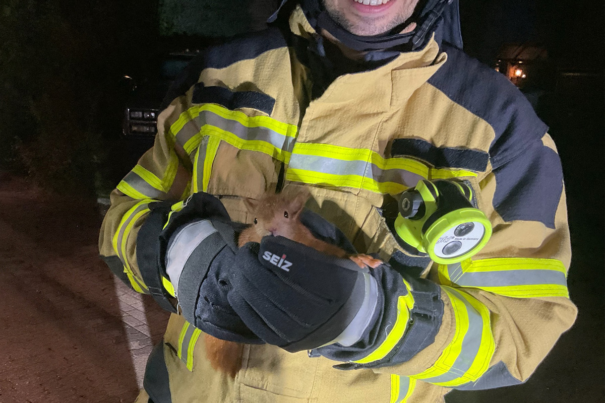 Erst dann gelang es, das Eichhörnchen zu greifen und sicher nach unten zu bringen.