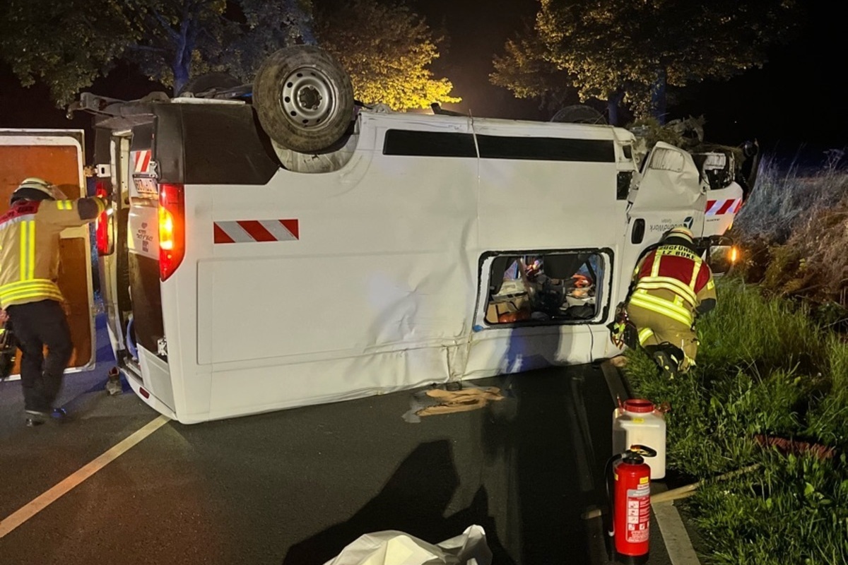 Er verlor im Bereich einer leichten Rechtskurve aus bislang ungeklärter Ursache zuvor die Kontrolle über sein Fahrzeug und kam nach links von der Fahrbahn ab. Nach dem Aufprall an einem Straßenbaum kam sein mit Werkzeug (u.a. Rüttelplatte) beladener Kastenwagen dann auf dem Dach auf der Fahrbahn zum Liegen. Durch den Aufprall wurde der Fahrer schwer verletzt.