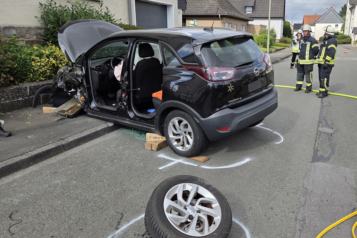 In Arnsberg-Bruchhausen (NRW) kollidierten am Dienstagvormittag (16.09.2025) zwei Autos auf der Klosfuhrstraße. Eine Person wurde im Fahrzeug eingeklemmt und musste mit hydraulischem Gerät befreit werden. Insgesamt drei Menschen wurden verletzt, zwei kamen ins Krankenhaus.