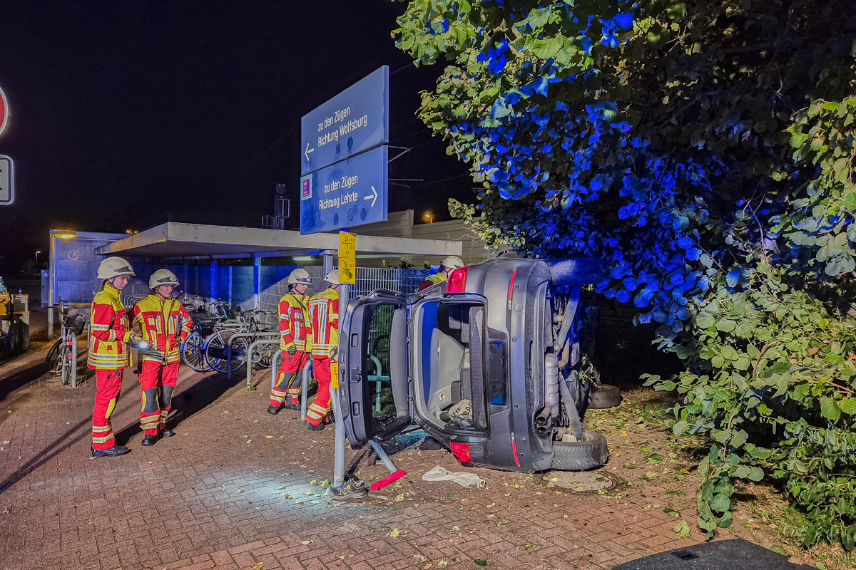 Der Pkw prallte gegen einen Fahrradständer. (Bildquelle: Freiwillige Feuerwehr Lehrte)