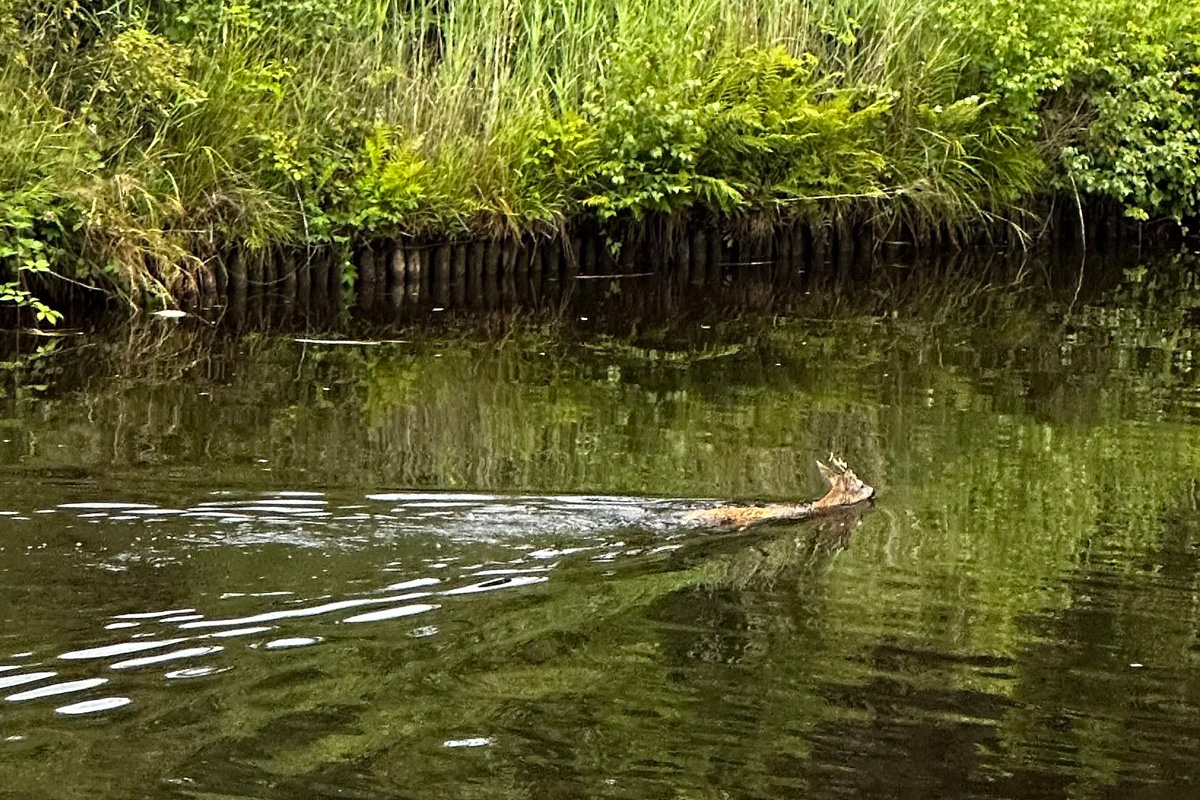 Passanten bemerkten am Dienstagabend (08.07.2025) ein schwimmendes Reh im Ems-Jade-Kanal.