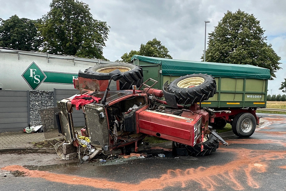 Am Mittwoch, 16. Juli 2025, kam es in Söhlde-Steinbrück zu einem Unfall mit einem Traktor. Der 24-jährige Fahrer verlor beim Abbiegen auf regennasser Fahrbahn die Kontrolle, kippte um und wurde schwer verletzt eingeklemmt.