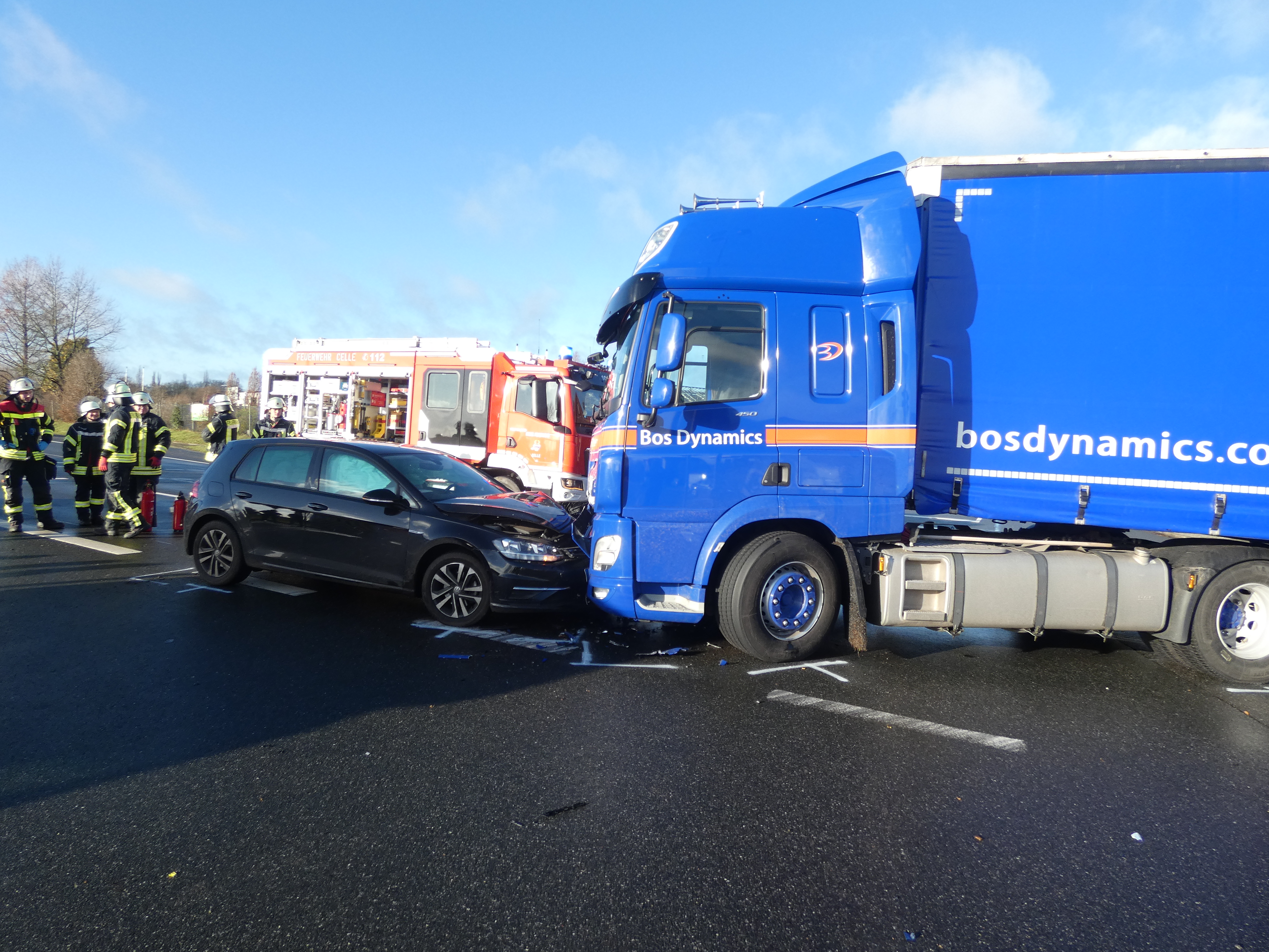 Frontalzusammenstoß zwischen LKW und PKW, fordert Schwerverletzten (Bildquelle: Polizeiinspektion Celle)