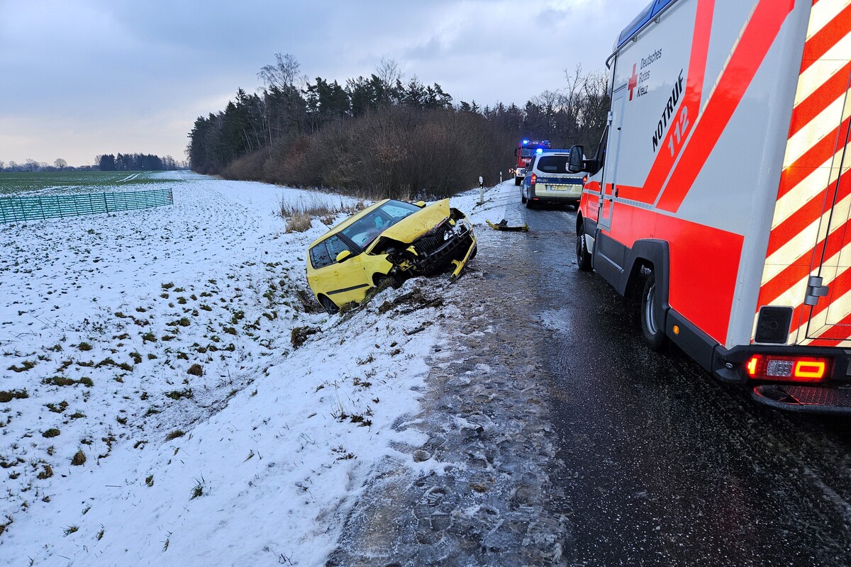 B194 bei Klevenow MV - Eine Person nach Unfall auf winterglatten Fahrbahn schwer verletzt