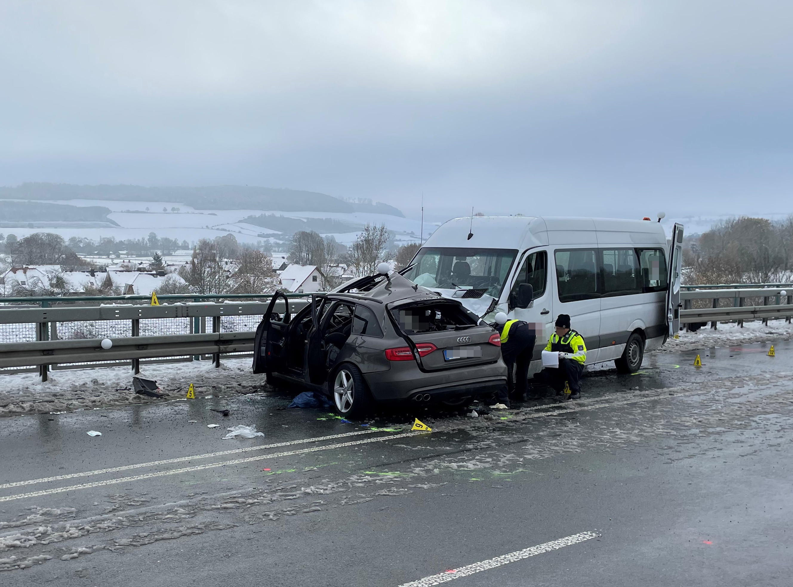 21-Jähriger gerät mit Audi auf glatter Strecke ins Schleudern und kracht in Kleinbus – tot (Bildquelle: Kreispolizeibehörde Höxter)