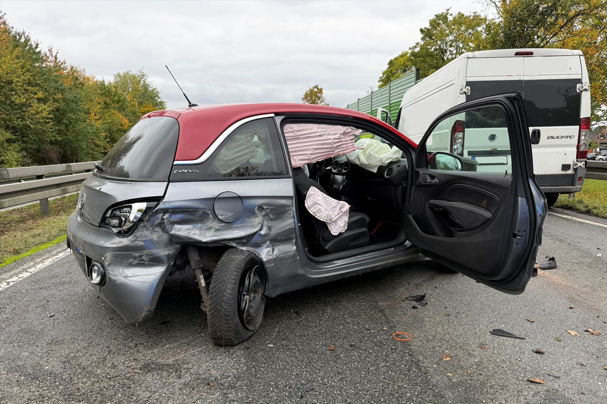 Ein Kleintransporter war aus bislang ungeklärter Ursache auf einen vorausfahrenden PKW aufgefahren.