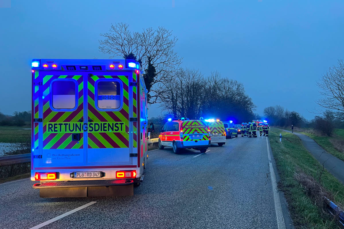 B76 Plön – 7 verunfallte PKW, 9 betroffene Personen, 2 Personen in Krankenhaus