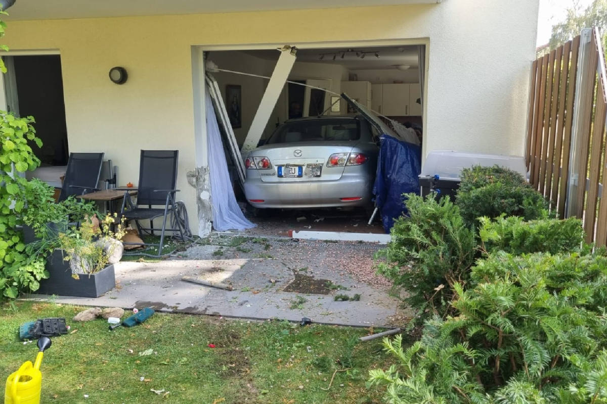 Nach derzeitigen Ermittlungen hatte eine 60 Jahre alte Fahrerin eines Pkw Mazda gegen 16:00 Uhr beim Ausparken aus einer Parklücke die Kontrolle über ihren Pkw verloren. Das Fahrzeug beschleunigte aus unklarer Ursache der Parklücke nach vorne, fuhr auf die Parkfläche, stieß dort zwei Altkleidercontainer zur Seite und fuhr stark beschleunigend weiter über Parkplatz und die angrenzende Straße. Dort ging es dann durch eine Hecke, den Vorgarten der Seniorenwohnanlage sowie die Terrassentür der Erdgeschosswohn, wo die Fahrt im Wohnzimmer endete. Im Wohnzimmer wurde die 91 Jahre Bewohnerin samt Sessel erfasst, die schwere Verletzungen erlitt. Ein weiterer 75 Jahre alter Bewohner konnte sich durch einen Hechtsprung retten und blieb unverletzt.