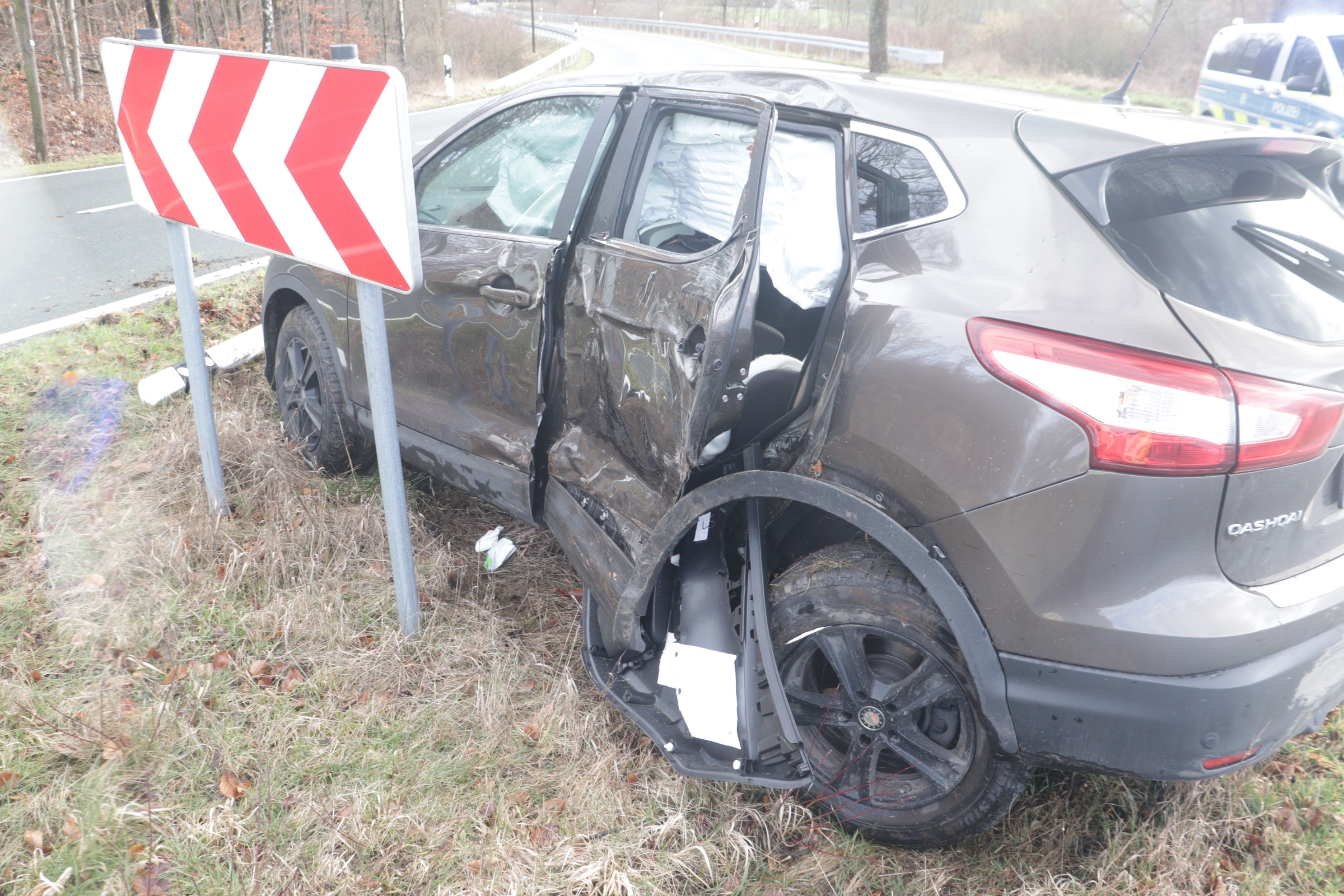 Am Dienstag, 14. März, gegen 16.30 Uhr, befuhr ein 41-jähriger Mann aus Hameln mit seinem Nissan Qashqai die K 18 von Bad Driburg in Fahrtrichtung Brakel. Bei einer Rechtskurve auf der Emder Höhe kam der Fahrzeugführer aus bisher ungeklärter Ursache links von der Fahrbahn ab.
