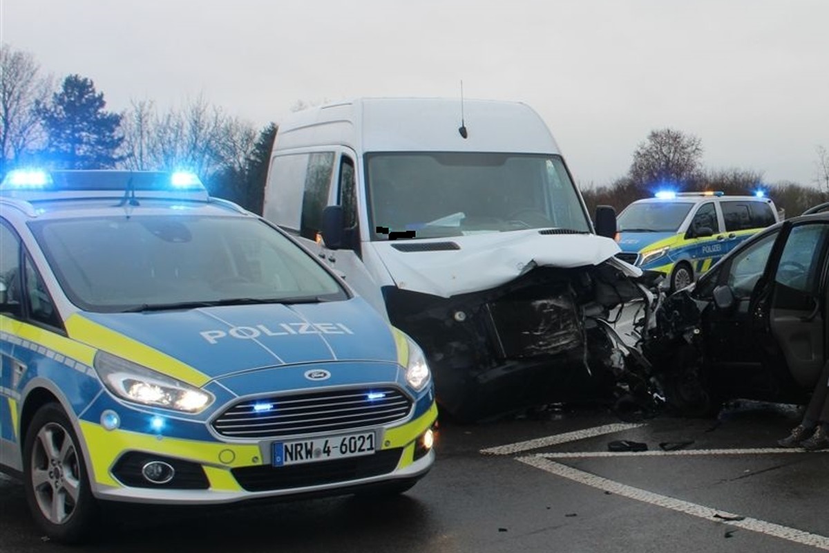 Kurz nach halb neun fuhr ein 23-Jähriger mit seinem Mercedes Sprinter die Vlothoer Straße. In Höhe der Zufahrt zur BAB 30 ordnete er sich auf der Linksabbiegespur ein und beabsichtigte, auf die Autobahn abzubiegen. Hierbei stieß er mit einem entgegenkommenden Daewoo zusammen.