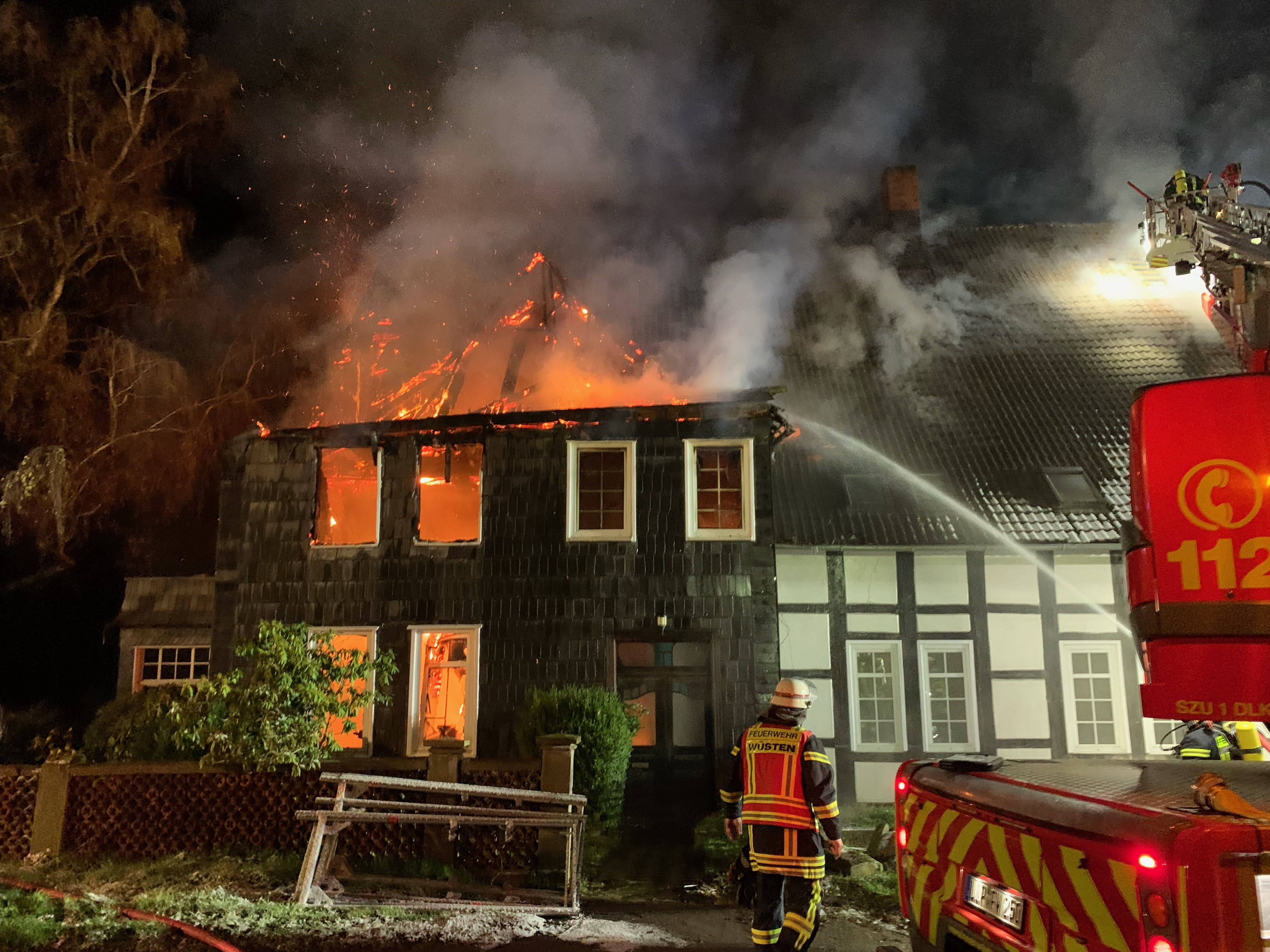 Bad Salzuflen – Brand vernichtet Bauernhaus – Feuerwehr ist mit 100 Einsatzkräften vor Ort