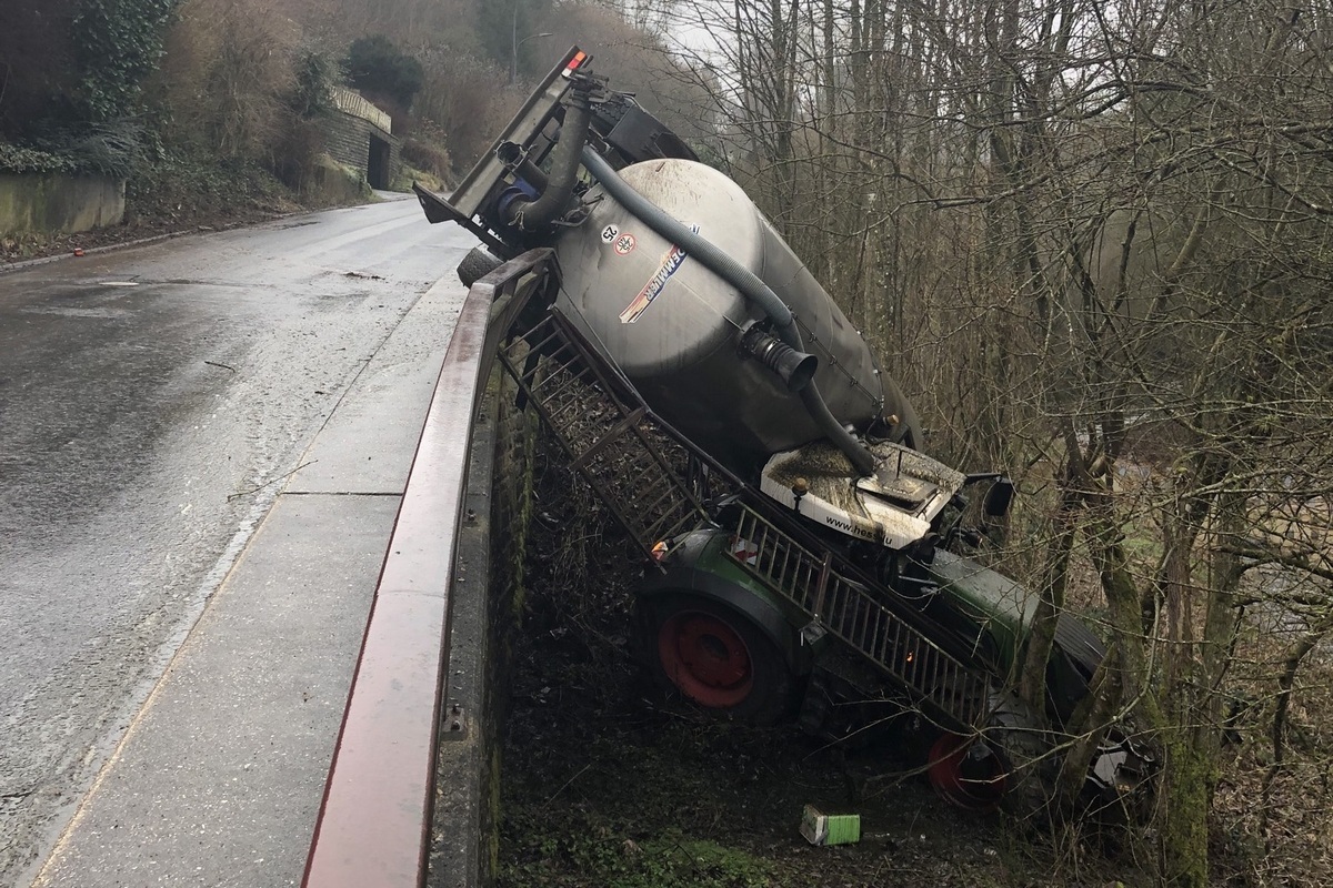 Bettingen RP - Traktor mit Güllefass verunfallt