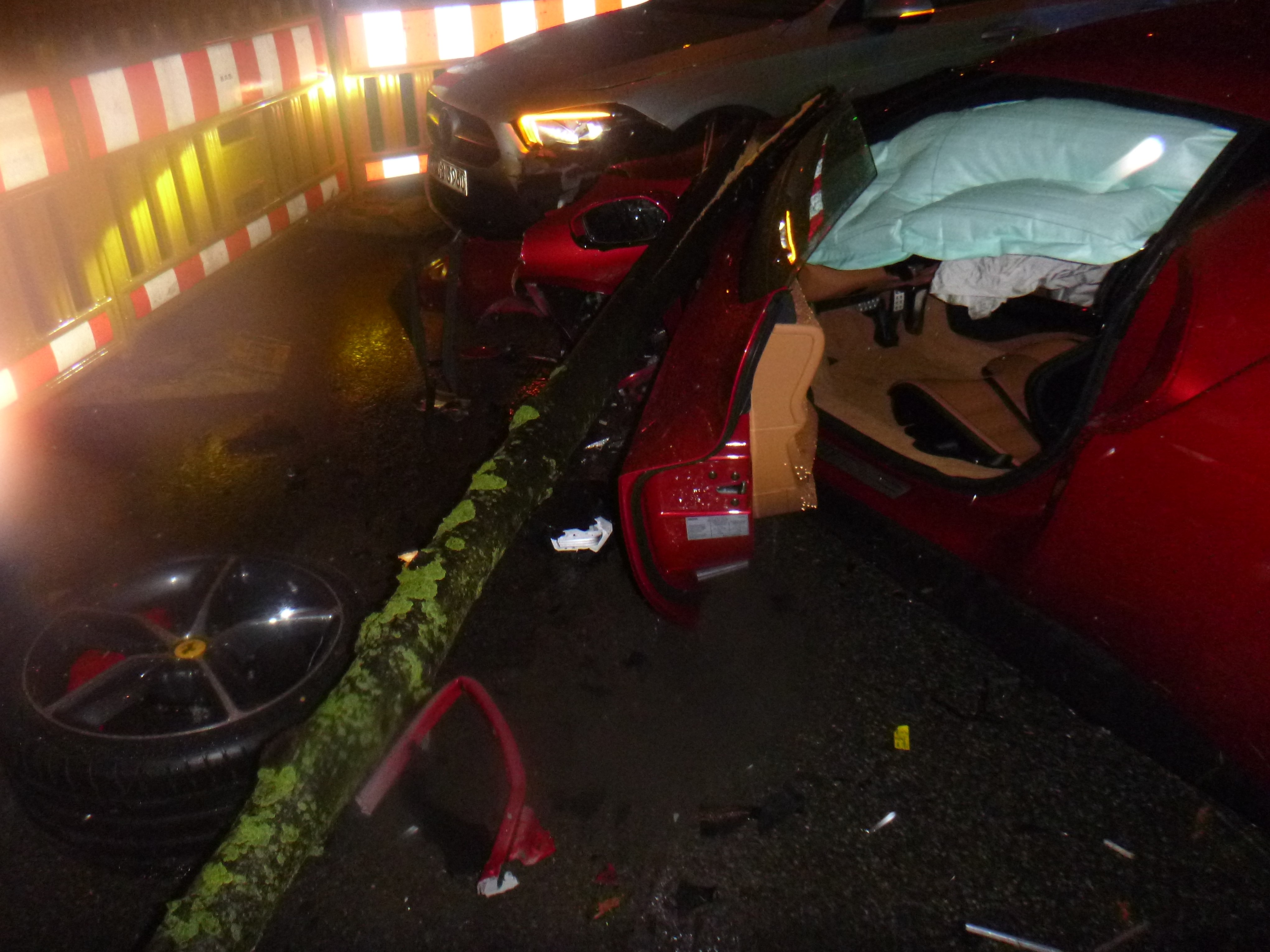 Unfall mit Ferrari sorgt für Straßensperrung (Bildquelle: Polizei Bielefeld)