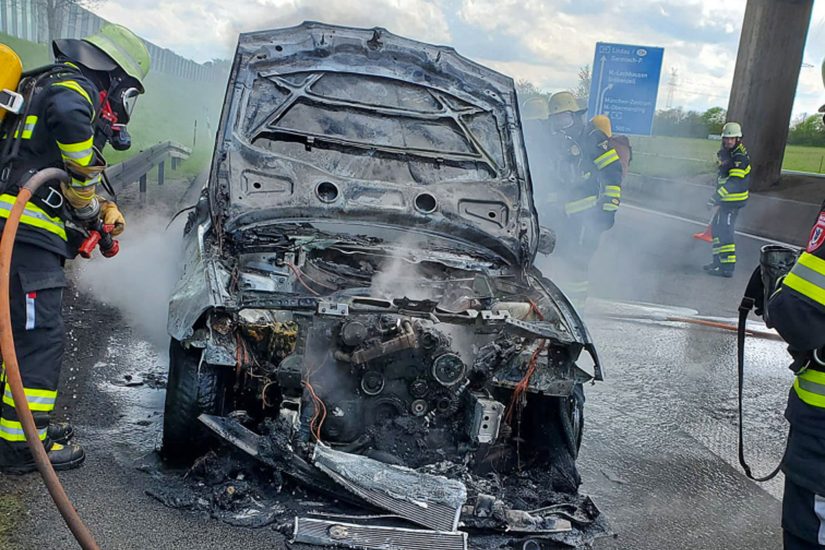 BMW brennt auf A99 in München - Totalschaden für Fahrzeug
