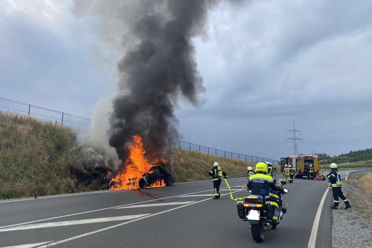 BMW in Flammen auf Autobahnzubringer bei Olsberg