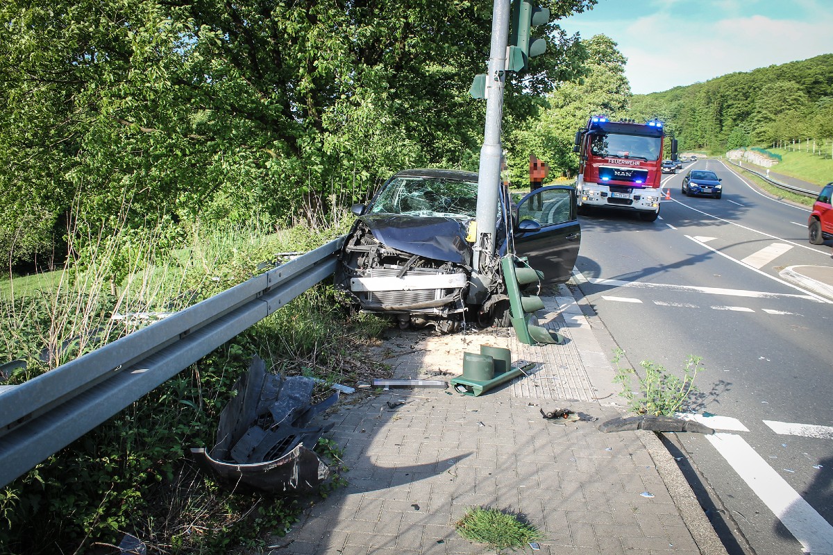Um kurz vor 18 Uhr fuhr der Senior mit seinem Auto auf der Kosterstraße in Richtung Hattingen. In Höhe der Hausnummer 128 kam er aus bislang ungeklärter Ursache nach rechts von der Fahrbahn ab und kollidierte mit einer Ampel.