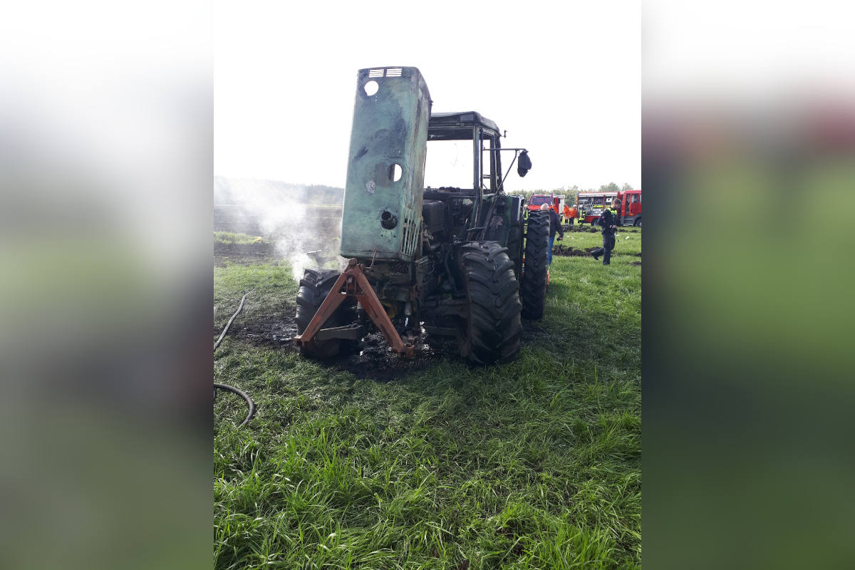 Am heutigen Donnerstagvormittag geriet gegen 10:00 Uhr, vermutlich aufgrund eines technischen Defekts, ein Traktor bei Aussaatarbeiten nahe der Laumühlener Straße in Brand.