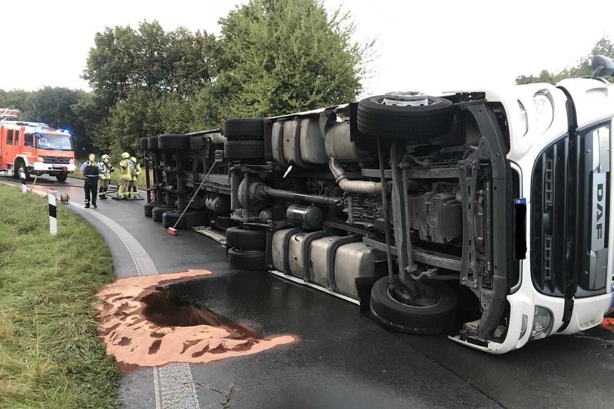 Bottrop - Mit Holz beladener Lkw umgestürzt