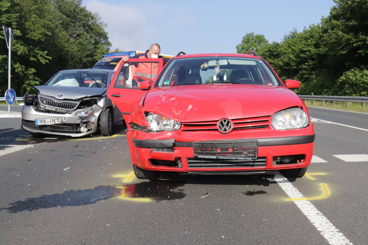Ein 88-jähriger Fahrer eines grauen Skoda wollte von Istrup kommend nach links auf die B64 in Richtung Bad Driburg einfahren. Dabei übersah er eine von links kommende 47-jährige Fahrerin eines roten VW Golf, die in Richtung Brakel unterwegs war. Es kam zum Zusammenstoß der beiden Fahrzeuge.
