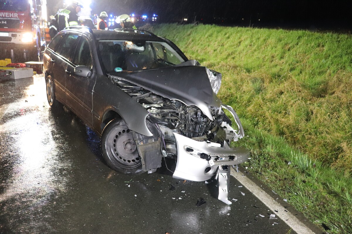 Dabei kollidierte er zunächst seitlich mit einem entgegenkommenden Audi, der von einem 25-Jährigen gesteuert wurde, und stieß anschließend gegen einen entgegenkommenden Opel. Der Opel wurde durch den Aufprall auf ein naheliegendes Feld geschleudert.