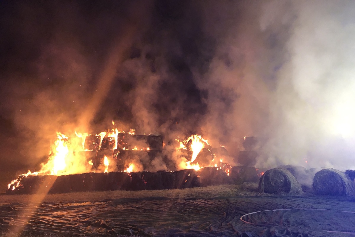In der Nacht zünden bisher unbekannte Täter ca. 300 Heurundballen auf einem Feld zwischen Kottweiler-Schwanden und Steinwenden an. Hierdurch entstand ein Sachschaden von ca. 16000 Euro.