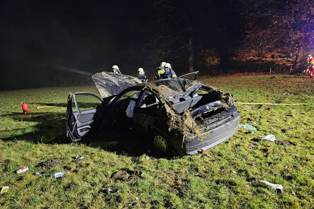 Am Freitag wurde die Feuerwehr Breckerfeld, um 18:54 Uhr, zu einem Verkehrsunfall auf der L 701 in Höhe Steherberg gerufen. Ein Auto kam von der Fahrbahn ab, hatte sich überschlagen und war auf einer Weide zum Stehen gekommen.