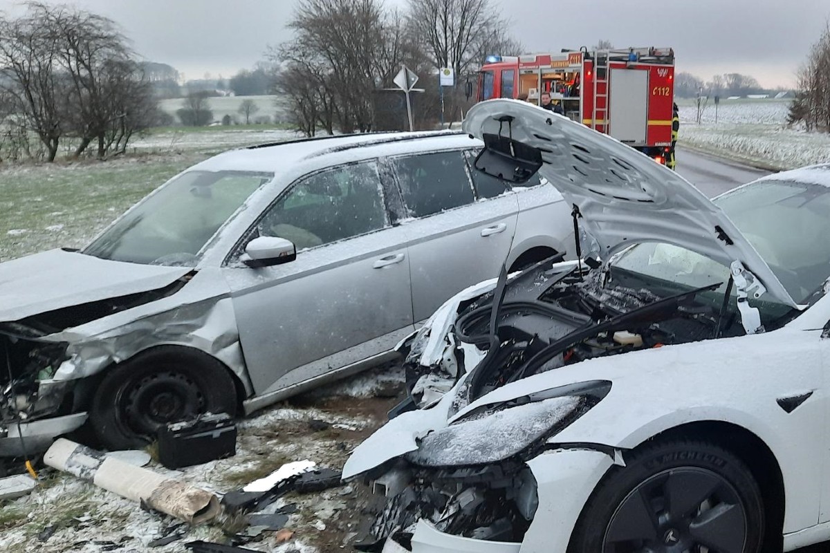 Frontalkollision zwischen Audi und Tesla. (Bildquelle: Freiwillige Feuerwehr Breckerfeld)