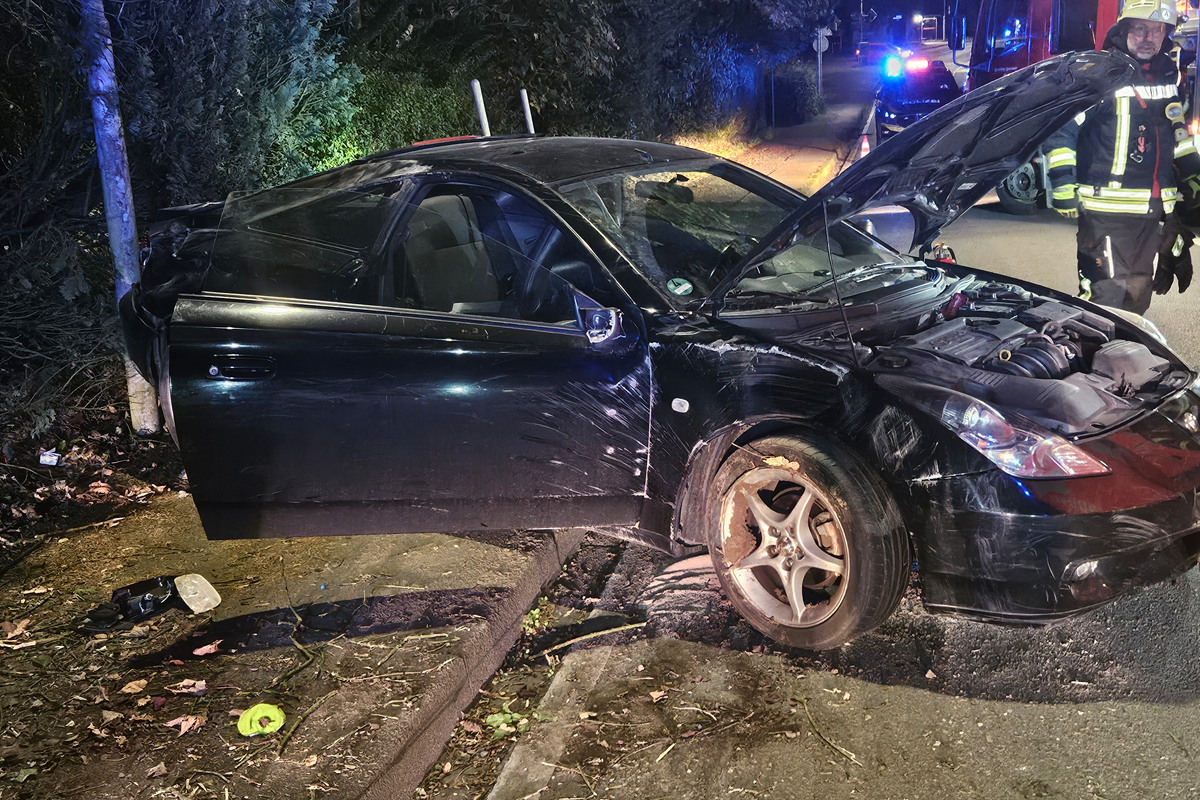 Ein PKW war von der Fahrbahn abgekommen und hatte ein Mäuerchen getroffen. Das Auto geriet nach Angaben der Polizei ins Schleudern, drehte sich um die eigene Achse und kam vor einer Laterne zum Stehen.