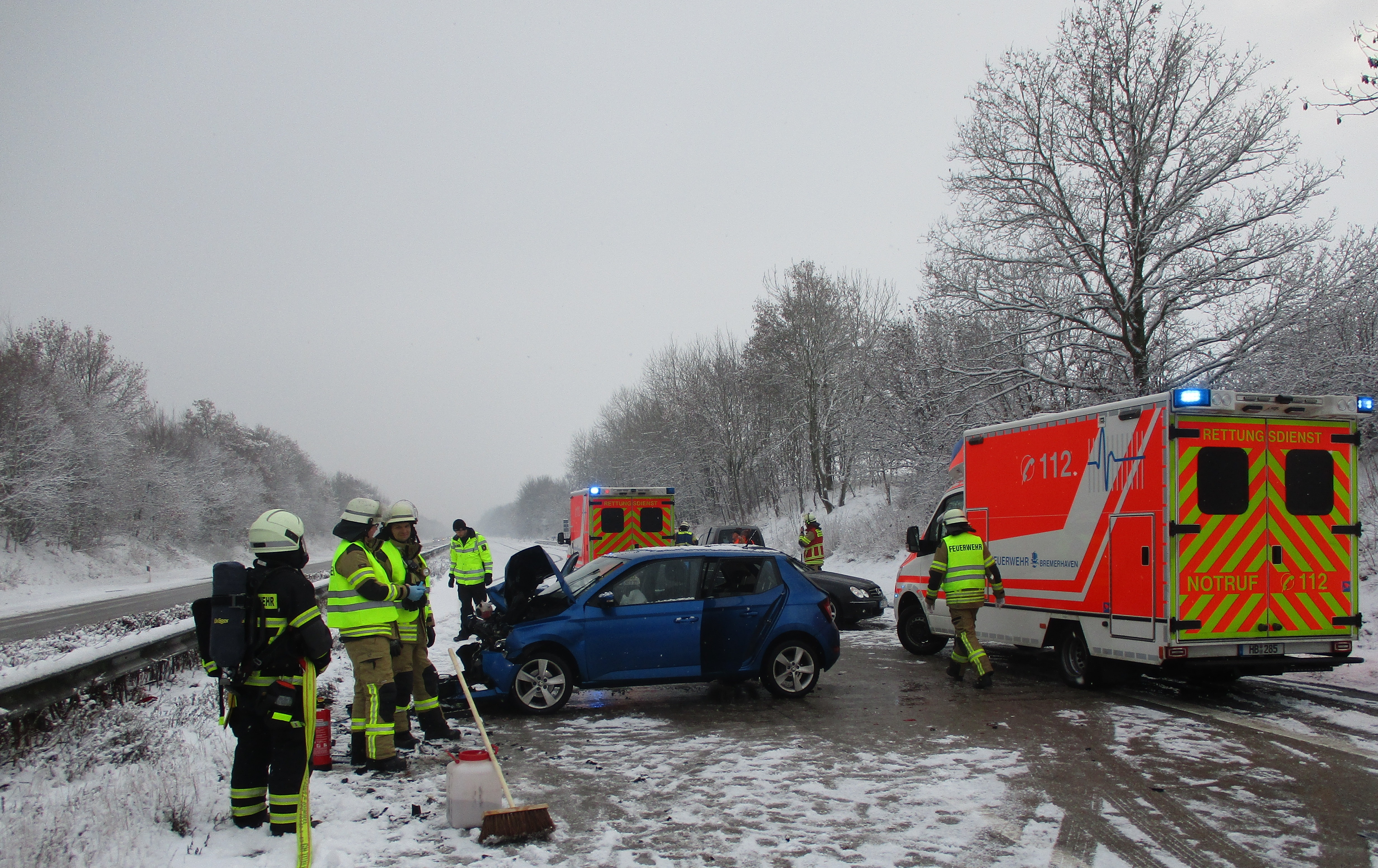 Für die Rettungsarbeiten musste die Autobahn in Fahrtrichtung Süden voll gesperrt werden. Parallel ereigneten sich zwei weitere Unfälle auf der Autobahn Höhe Bremerhaven. Hier wurden keine Personen verletzt.