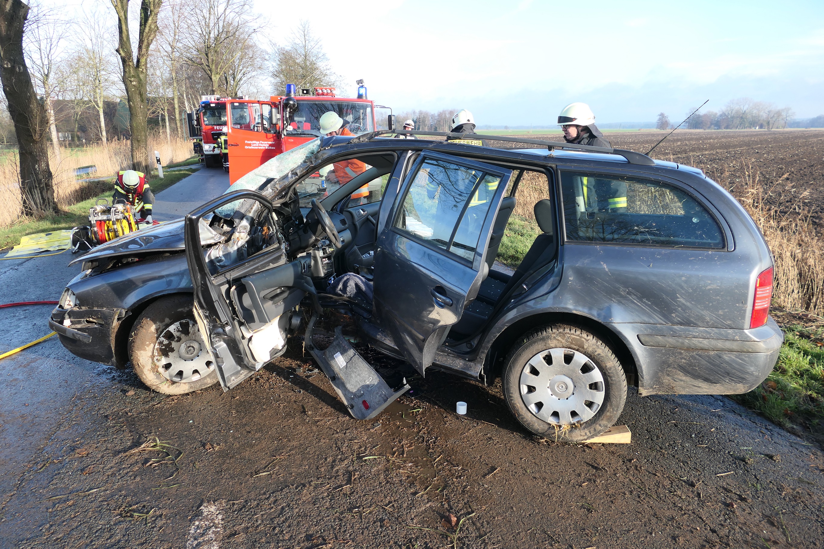Eine 48-jährige Frau aus Bülkau kam hierbei aus bislang unbekannter Ursache nach rechts von der Fahrbahn ab und kollidierte dort mit einem Straßenbaum. Durch die Wucht des Aufpralls wurde der Bereich der Fahrertür stark deformiert. Die Frau erlitt lebensgefährliche Verletzung und wurde in ein Krankenhaus gebracht. Ein angeforderter Rettungshubschrauber kam nicht mehr zum Einsatz. Die Unfallstelle musste für die Rettungsmaßnahmen und Unfallaufnahme mehrere Stunden voll gesperrt werden.