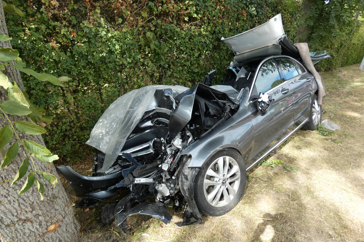 Frontal in Baum geprallt – Beifahrerin tot und Fahrer schwer verletzt (Bildquelle: Polizeiinspektion Cuxhaven)