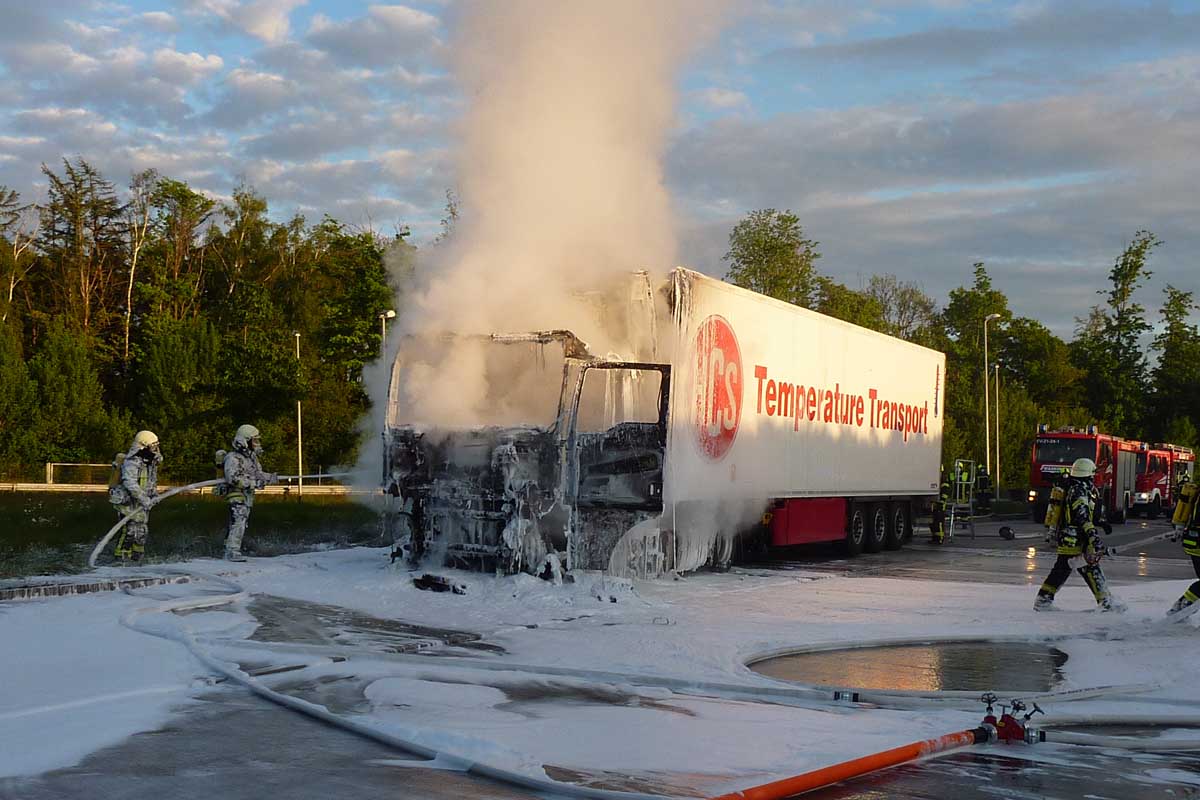 Das genaue Ausmaß der Fahrbahnschäden wird erst nach Abtransport des ausgebrannten Sattelzuges eingeschätzt werden können.