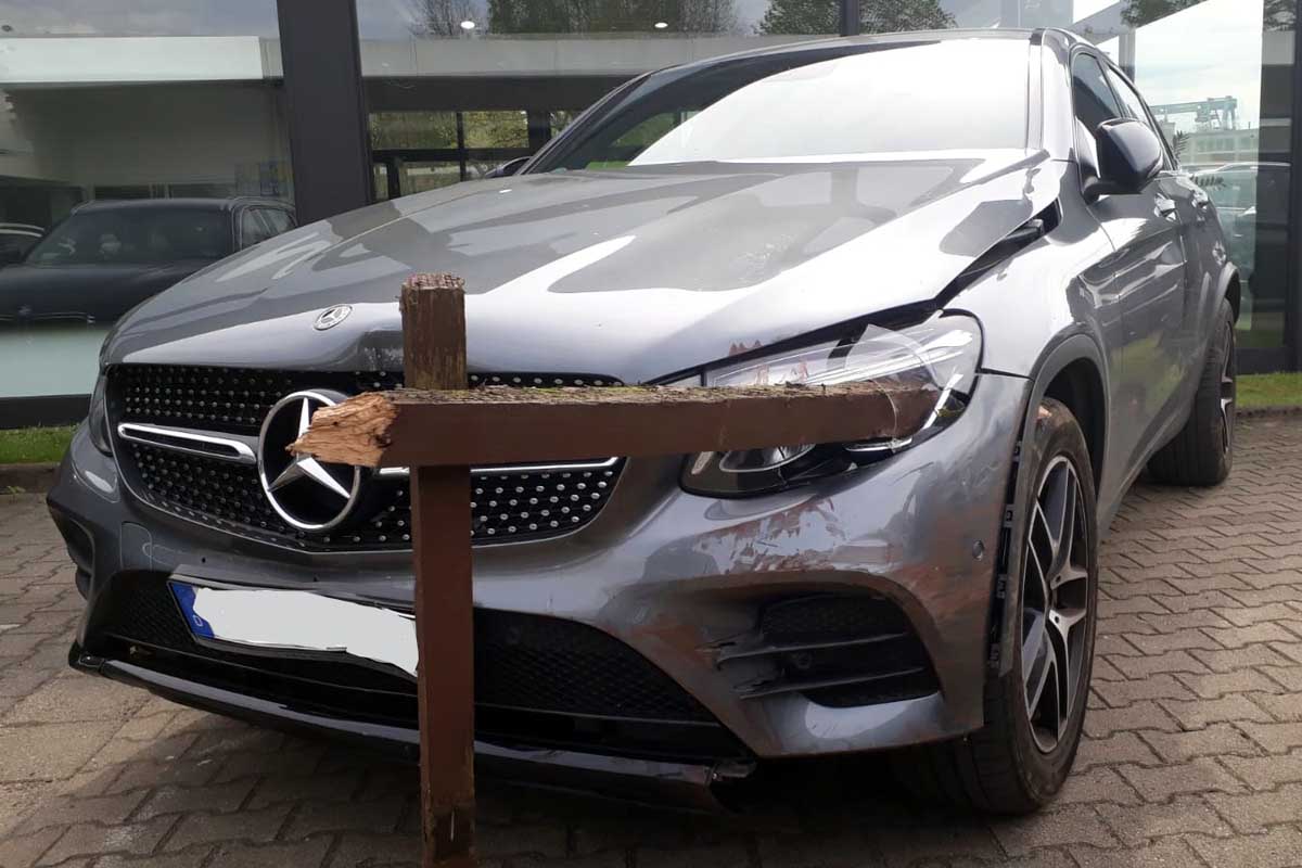 Das corpus delicti fanden die inzwischen schmunzelnden Beamten auf dem Werkstatthof. Der Zaunpfahl steckte noch und der 77 Jahre alte Fahrer gab nach Bekanntgabe der Einleitung eines Ermittlungsverfahrens reumütig alles zu.