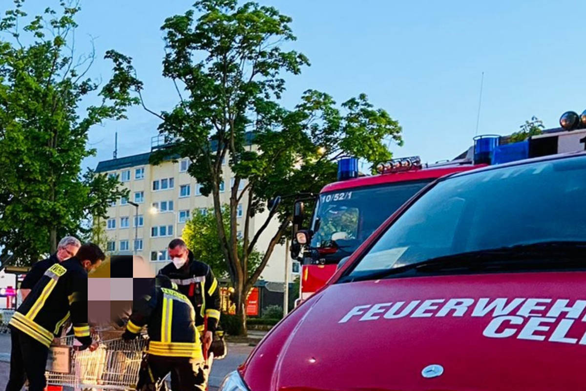 Celle - Jugendliche steckt in Einkaufswagen fest