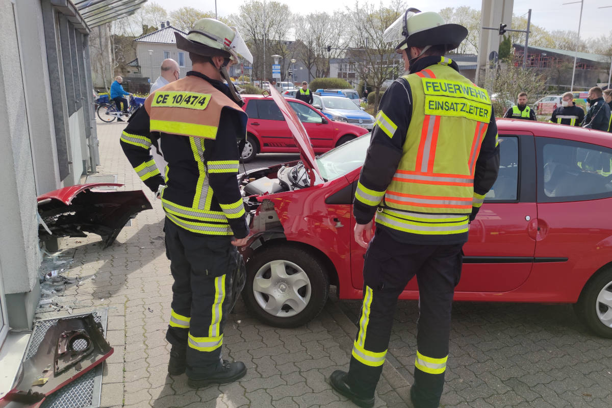 Ein PKW war gegen eine Hauswand und teilweise in ein Schaufenster gefahren. Bei Eintreffen der Feuerwehr wurde der Fahrer durch den Rettungsdienst versorgt. Durch die Einsatzkräfte der Feuerwehr wurde das Fahrzeug stromlos geschaltet. Im Einsatz war die Ortsfeuerwehr Celle-Hauptwache, der Rettungsdienst des Landkreises Celle und die Polizei. Zur Unfallursache kann die Feuerwehr keine Angaben machen.