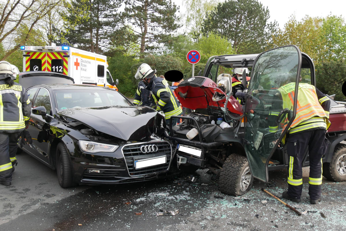 Bei Eintreffen der Feuerwehr an der Einsatzstelle waren zwei PKW im Kurvenbereich einer innerstädtischen Straße frontal zusammengestoßen. Zwei Personen waren in ihrem Fahrzeug eingeschlossen, aber nicht eingeklemmt. In enger Zusammenarbeit mit dem Rettungsdienst erfolgte die Rettung der Personen aus dem Fahrzeug. Insgesamt waren vier Personen betroffen, hiervon waren drei Personen verletzt, von diesen zwei schwer. Nach Rettung der Personen übernahm die Feuerwehr Sicherungsaufgaben, schaltete die Fahrzeuge stromlos und streute auslaufende Betriebsstoffe ab.