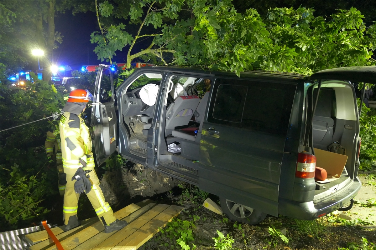 Zwei Frauen wurden gestern, 02.06.2023, bei einem Verkehrsunfall verletzt. Die Autofahrerin kam von der Fahrbahn ab und kollidierte mit einem Baum, der dann auf das Fahrzeug stürzte.