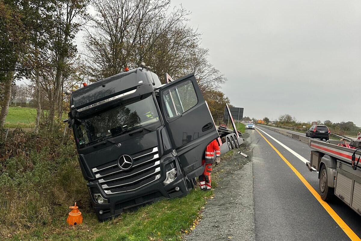 Ein, zum Glück nicht beladener, Autotransporter war gegen Mittag aus noch nicht bekannter Ursache in den Seitenraum geraten und hatte sich festgefahren. Da die Unfallstelle in einer Baustelle lag, musste für die Bergung die Autobahn ab etwa 15 Uhr in beide Fahrtrichtungen gesperrt werden.