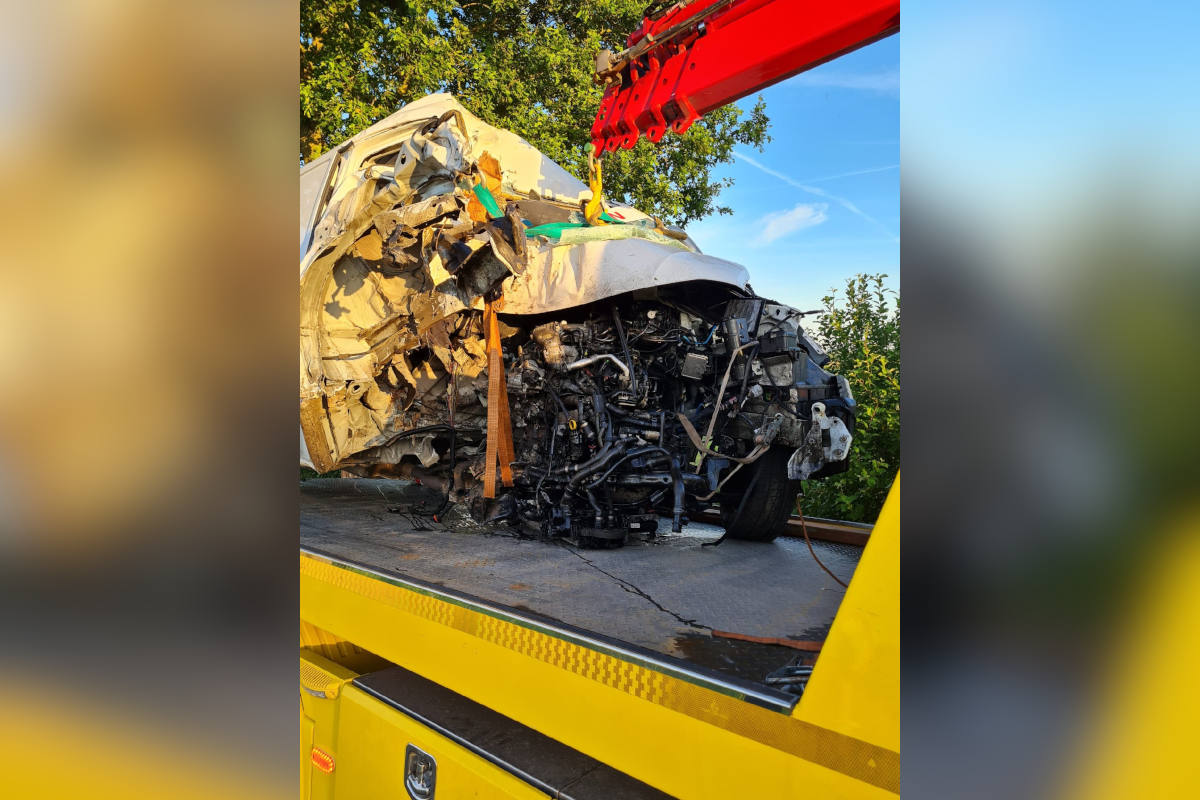 Der Transporter wurde bei dem Unfall erheblich beschädigt. Es ist von einem wirtschaftlichen Totalschaden auszugehen.