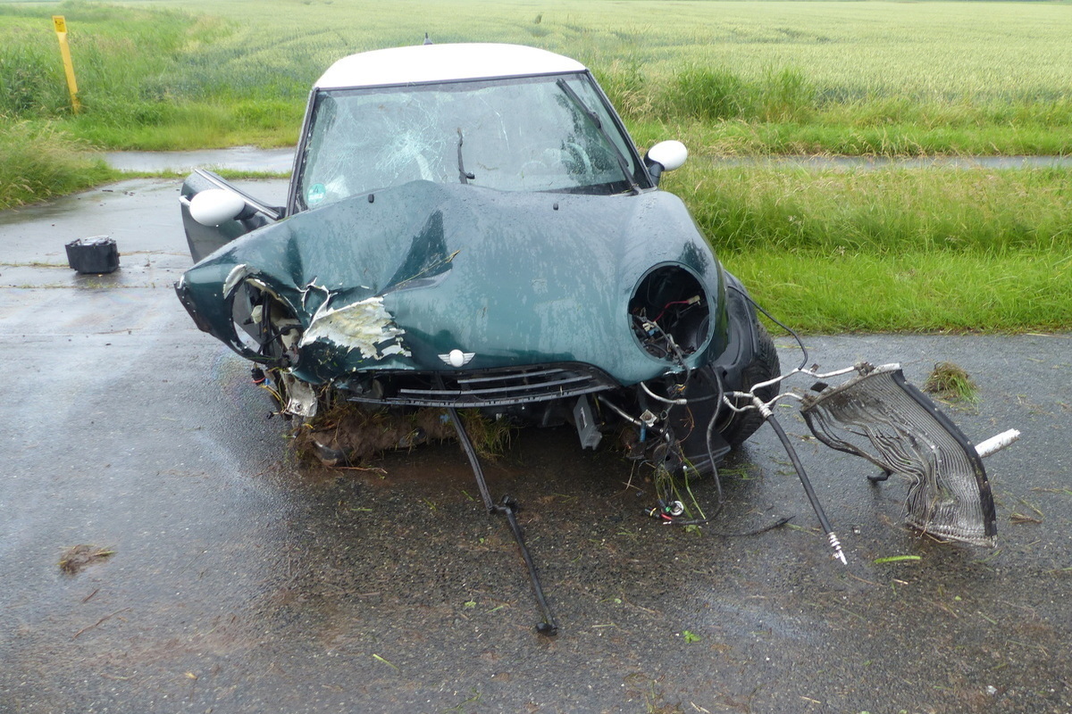 Ein 20-Jähriger aus der Wurster Nordseeküste war mit seinem Pkw auf regennasser Fahrbahn alleinbeteiligt von der Fahrbahn abgekommen und gegen einen Baum geprallt, woraufhin sich das Auto mehrfach überschlagen hatte. Der 20-Jährige verletzte sich dabei schwer und musste im Krankenhaus behandelt werden.