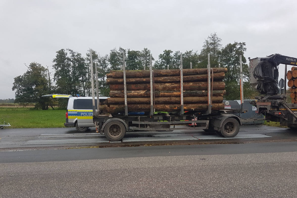 Speziell ausgebildete Beamte der Polizeiinspektion Cuxhaven führten in dieser Woche (25.10. - 29.10.2021) aufgrund wiederholter Feststellungen Sonderkontrollen von schwer beladenen Holztransportern im Bereich Steinau durch.
