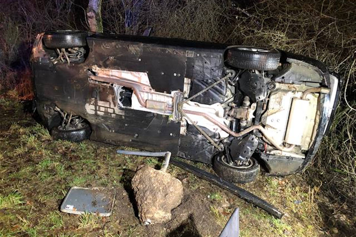 Fahrzeug bei Unfall auf der Seite gelandet (Bildquelle: Polizeidirektion Wittlich)
