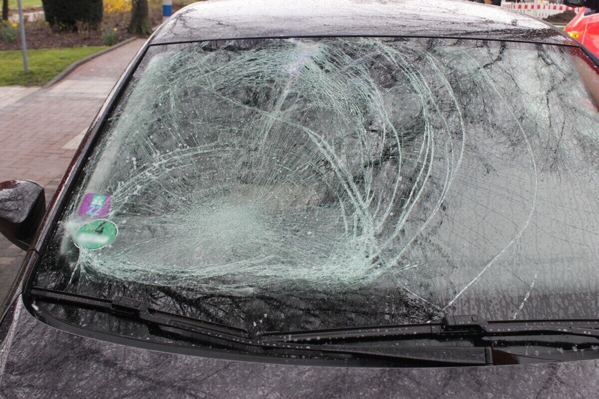 Dabei knallte er mit seinem Körper auf die Windschutzscheibe die dadurch stark deformiert wurde. Er verletzte sich so schwer am Kopf und an der Hüfte dass er mittels Rettungswagen in das nächstgelegene Krankenhaus verbracht wurde.
