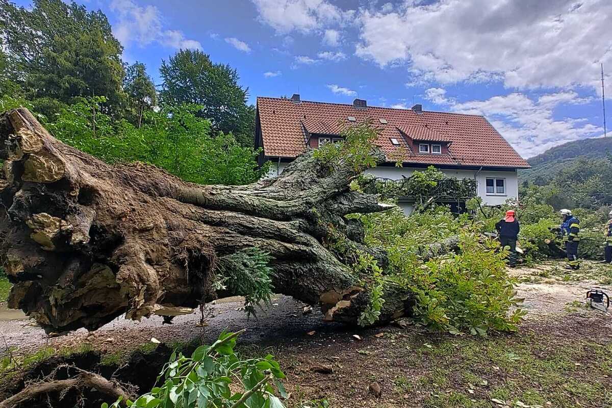 Eine starke Windböe brachte den Baum zu Fall (Bildquelle: Feuerwehr Detmold)